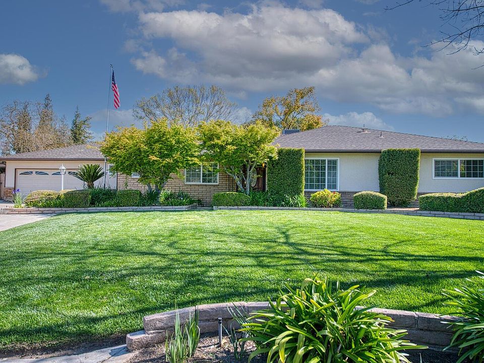 Magnificent Mansionette in Northwest Fresno! This lovely 2177 sq ft, single story, 3 bedroom, 2 bath home is situated on a massive 18,900 sq ft lot. You read that right... 18,900 sq ft lot! The home has been lovingly maintained by its owner for over 28 years and has wonderful curb appeal with pride of ownership. The kitchen has been beautifully updated with granite counters, stainless appliances, farm sink, induction stove, pot-filler, sky-lite and laminate flooring. The great-room and living rooms are spacious and have wonderful natural lighting. Enjoy entertaining in the sun-room and extensive back patio where friends & family can gather. Many great features such as; huge driveway, RV/ boat parking, covered carport, fruit trees, HVAC was replaced in September 2022.