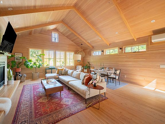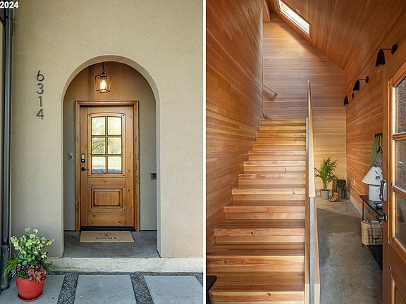 Exquisitely redesigned with a captivating Scandinavian flair, this home is simply breathtaking. Your inviting wood-clad foyer feels like entering a sanctuary and serves as the perfect space for storing your outdoor essentials before heading up to the ski-lodge-inspired living area. The impressive, open-concept living and dining areas are enveloped in wooden accents extending from floor to ceiling, enhanced by a gas fireplace, while sky and treetop views ensure an elevated sense of privacy. The stylish, custom kitchen boasts generous counter space and storage, complimented by stainless steel appliances and convenient eat-in bar. Two bedrooms upstairs share an enclosed balcony overlooking the private patio for entertaining, also accessible from a second balcony off the kitchen, perfect for container gardening. With five bedrooms and three bathrooms, you'll have ample flexibility to accommodate your work-from-home needs, generate rental income, or host guests comfortably. The ground-floor level offers a stylish kitchenette and bedroom easily separated from the primary rooms of the house for privacy from guests or tenants. This impeccably updated and maintained home is ready for you to enjoy a low-maintenance lifestyle with minimal yard work balanced by access to Rose City Park right across the street, and just blocks to food carts, grocery, public transit, schools and more. Updates include, but are not limited to, new smart light fixtures, 50 amp circuit in garage for EV charging, new tile and bath updates, added built-ins, a new deck and railings, irrigation, exterior gates, custom garage work bench, and so much more. [Home Energy Score = 3. HES Report at https://rpt.greenbuildingregistry.com/hes/OR10185113]
