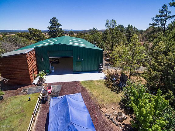 Own A Piece of the FOREST and get away from it all in the High Country at your 5.57 Acre property. This home has it all! Huge 52 x 61 heated garage is perfect for the car/aviation, equestrian, hobby and atv enthusiast. 14' roll up doors on each end of home. Kitchen hosts commercial grade appliances including TRUE TS49 refrigerator, TRUE TS23F Freezer and Southbend and Middleby Company 6 burner propane oven/stove. Private well with 2500 gallon holding tank. 500 gallon propane tank is owned. Reclaimed/milled wood from the Historic Rodeo Chediski fire in the Master. Enjoy relaxing in your indoor jacuzzi after a day of fishing, hiking or atving.