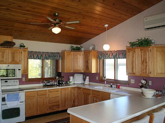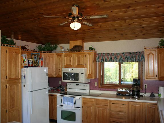 This Island Lake property is a must see! With generous amounts of kitchen space, vaulted ceilings, 4 BR's 3 Baths & 3752 sq feet, this walkout home is perfect to live in. Cozy up to the real stone fireplace or lounge on the Expansive cedar decks, this home with 156 acres, hunting trails, and 640 feet of lake shore doesn't get any better than this. A true gem in the North woods!
