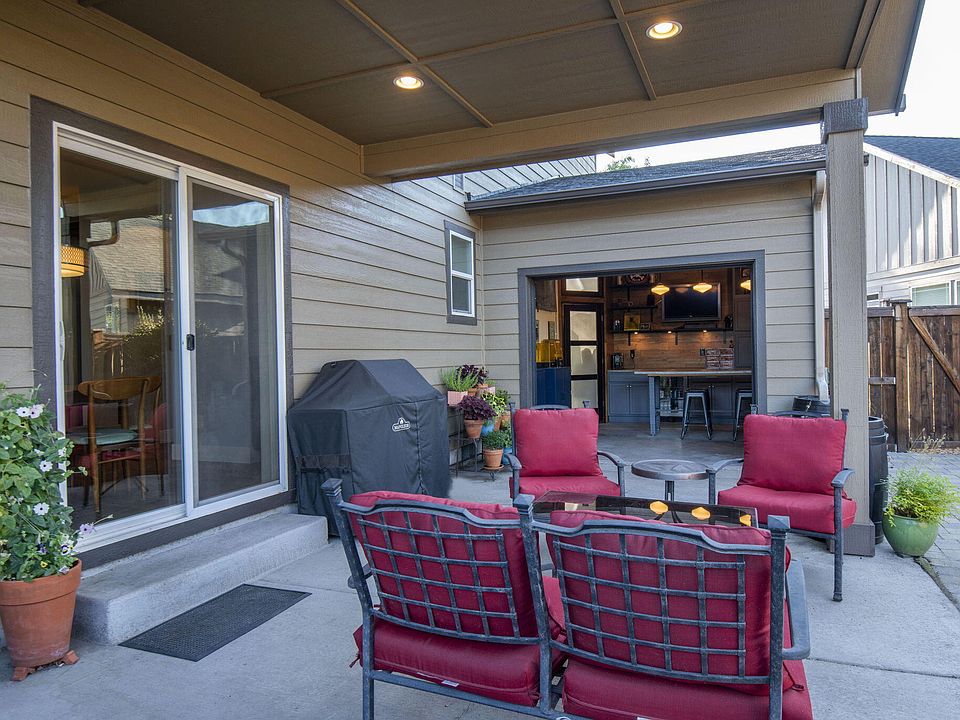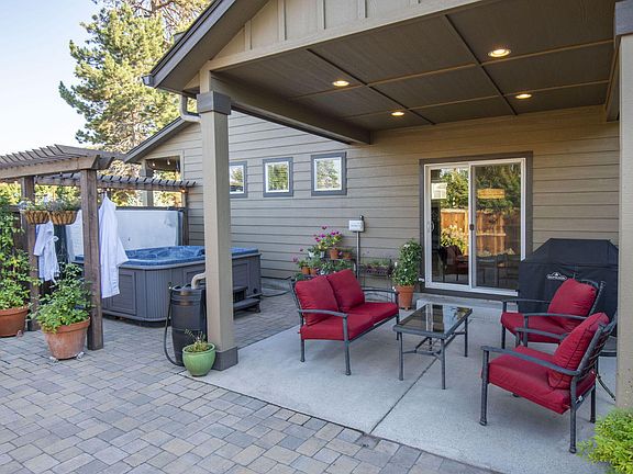 A Spirited home on a Unique flag lot. Creatively designed for highest use, this home offers one of the coolest outdoor spaces with a roll up garage door opening to the back patio - belly up to the bar boys! This man cave / she shed is ideal for your craft, your friends, your fun! Hot tub and water feature out back invite you to play. The home is a perfect layout with an open floor concept on main level including 1/2 bath and large pantry. Top floor offers 3 bedrooms, 2 full baths (including the primary), a laundry room and that second shared space for TV/gym/office/work from home. The oversized two car garage with workshop inspires PLUS the greenhouse and raised beds. Everything is here! Walkable to Sawyer Park, Riley Ranch, Deschutes River Trail, such a great location!