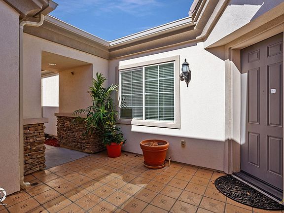 One-of-a-kind home in the Solera Adult Community 55+! This home offers 3 bed + 2 baths on approx. 1886 sq. ft. Once you walk up to the door you are greeted with an open, tiled, sitting area, great for your morning coffee! The great room has a cozy, corner fireplace which is perfect for the fall weather. The kitchen has a breakfast area and eat in bar area, granite counter tops, black appliances and ample cabinetry. Indoor utility with cabinets and sink provides more storage. The generous primary bedroom includes a well appointed private bath with dual sinks, separate tub, walk in shower, and walk in closet. 2 additional beds and 1 full bath round out this amazing home. The backyard has a covered patio with ceiling fan and easy to maintain landscaping.. Call today!
