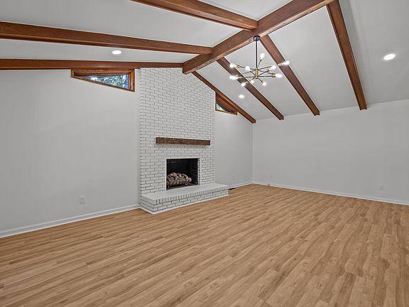Step into a home that redefines modern living. This renovated, exceptional property blends contemporary design with timeless character, offering an impressive ''wow factor'' from the moment you walk in. The expansive open floor plan features soaring ceilings, exposed beams, a custom accent wall, recessed lighting, and a striking floor-to-ceiling brick fireplace that anchors the living space. Natural light floods through oversized new windows, highlighting the designer kitchen—complete with quartz countertops, a waterfall island, stainless steel appliances, and full-tile backsplash. The primary suite offers a true retreat experience, featuring private access to a spacious deck and gazebo—perfect for morning coffee or relaxing evenings outdoors. The ensuite bath exudes spa-like luxury with a dual vanity, custom tiled shower, and elegant designer finishes. Additional highlights include generously sized secondary bedrooms, a beautifully updated full bath with floating vanity and tiled tub, a large climate-controlled sunroom, and a separate laundry room. Outside, the flat, private backyard provides an ideal setting for entertaining, quiet mornings, or simply enjoying the outdoors. This home has been thoughtfully reimagined with modern comfort and style in mind. Schedule your private showing today and experience it for yourself!