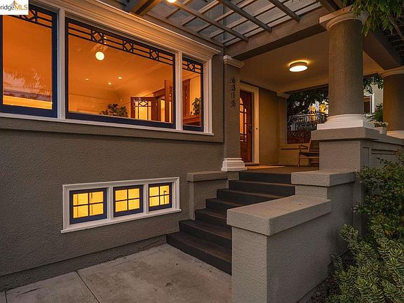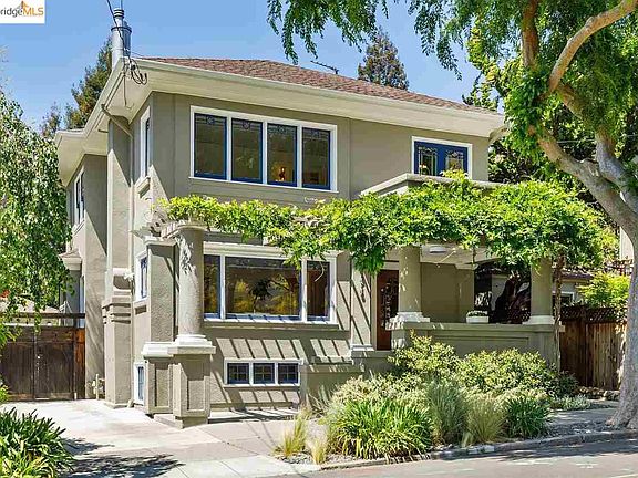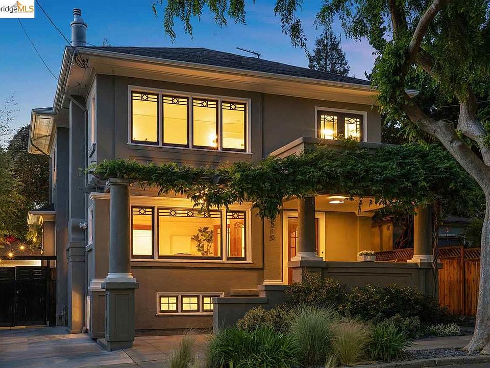 Exceptionally detailed 3+ Bedroom Prairie Craftsman on one of Rockridge's prettiest tree-lined streets! This 1915 home greets passers-by with its welcoming front porch and it's decorative windows. The interior gets high marks for its logical layout of 3 bedrooms and 2 bathrooms on the upper floor, a built-in home office nook in the upper hallway, exquisite detailing in the treasured gumwood trim and built-ins, gorgeous beveled glass windows and built-in mirrors throughout, an updated eat-in kitchen with generous center island & cozy office nook, and a lower level featuring a laundry room, extra storage, and a bonus room for private guest quarters or another home office! Surrounded by lush, elegant landscaping, hand-built masonry rock walls and a large flagstone patio, a focal point California Buckeye tree, the detached garage, and the upper driveway "sport court". A+ Rockridge location & Walkscore make 6315 Chabot Rd your forever home!