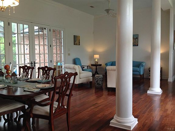 BEAUTIFUL PRIVATE ESTATE. This home is located in a quiet natural setting and sits on almost 5 acres. The home showcases a 3 car garage, crown molding, tile and Brazilian Cherry hardwood, 6" baseboards. Elegant columns on the front porch and foyer welcome you to this elegant home. You are met with a gorgeous view of the pool and lanai as you look through the french doors of the formal living and dining room to the outdoor living area. You will enjoy the tranquility of your screened pool with solid sheet waterfall. Your tour continues with the gourmet kitchen that offers custom design cabinetry, granite counter tops, tiled wall and backsplash, breakfast bar and double wall oven. The kitchen is open to family room with its fireplace and built in cabinetry that also has access to the lanai. Master suite has a southern exposure with natural light, high ceiling, very large double closets. Master Bedroom has private access to the lanai and pool. Master bath has deep soak whirlpool, separate cultured marble shower with glass enclosure and seat and granite his/her vanities. One additional bedroom is near the master and has a private bath for guests or would make a great office or nursery. Two additional spacious bedrooms and a bath are split from the master. It has a large Laundry room with deep sink and plenty of storage. The yard is fully landscaped with complete irrigation system, whole house generator, huge workshop.