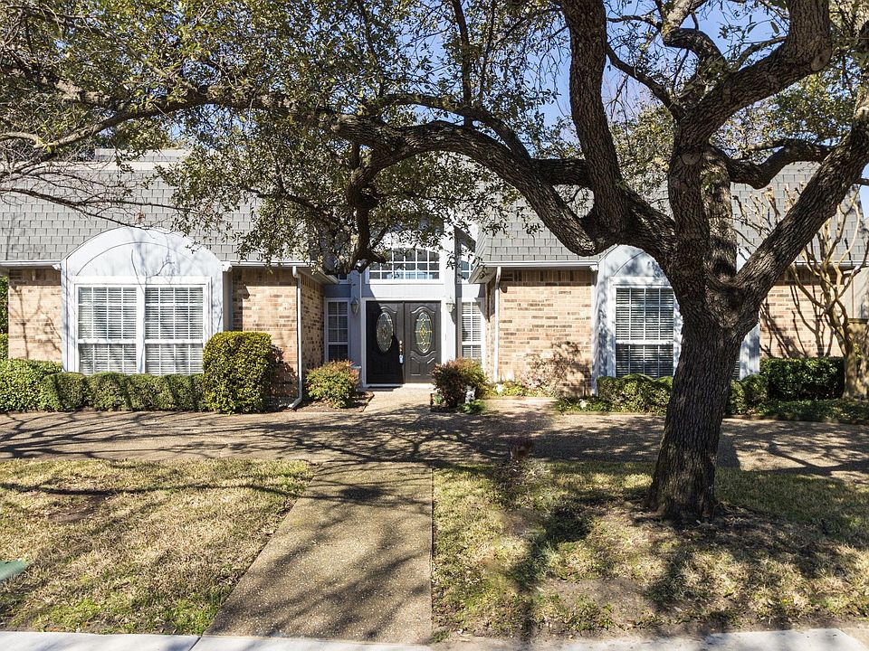 Custom builders personal home with French flair and circle drive in highly desirable Preston Bend with many updates. Master is down with fireplace and French door to lattice-covered patio. Master bath is totally remodeled and updated. Spacious additional bedroom is down. Double front doors open to large living area with two story ceiling and impressive fire place plus wet bar and wall of windows. Kitchen has recent stainless steel appliances, granite island. Study or TV room down.