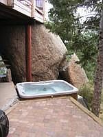 Large private patio with Hot Tub off the family room, nestled in the rocks and trees surrounded by nature and views