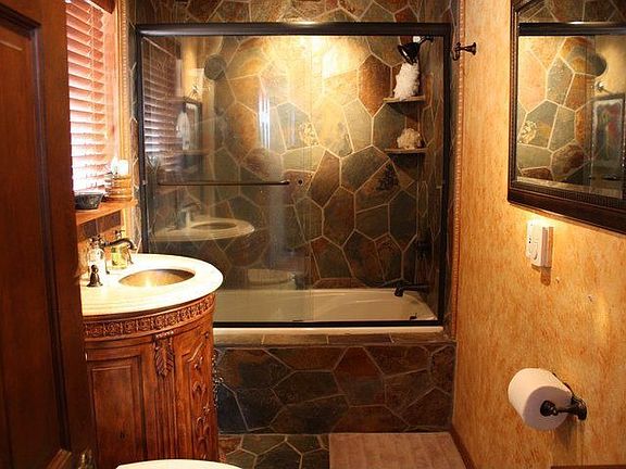 New luxury main bathroom with radiant floor heat, stone finish and upgraded features.