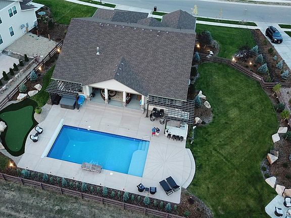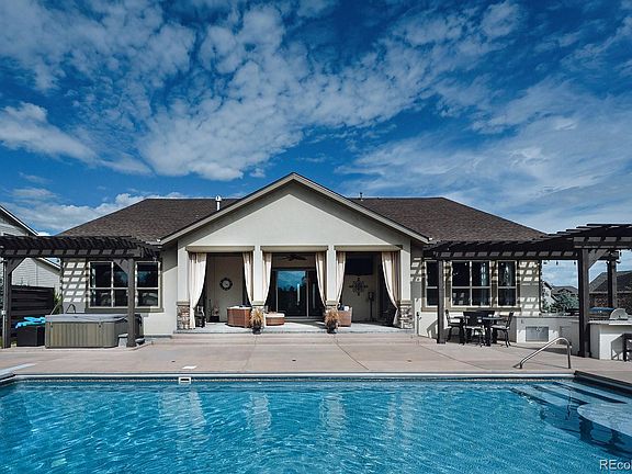 Enjoy the luxurious lifestyle with this incredible raised ranch-style home within coveted Estates of Kechter Farm! Step through the front door of this immaculate home that boasts the views through the large 3 panel doors of the large saltwater swimming pool, lighted landscaping, and backs to expansive acres of beautiful open space. The impressive, large yard is full of surprises such as a heated covered patio, outdoor kitchen, hot tub, gas stone fireplace, and 3-hole putting green. Inside of the home does not disappoint with only high-end finishes and attention to detail. The main level offers beautiful hardwood floors in the common areas. The beautiful great room includes a gas fireplace and built in storage. The large open kitchen has built-in high-end appliances and a large island with seating and plenty of storage. A spacious office gives the convenience of working at home with built-in cabinetry. The luxury primary en-suite includes sliding glass door access to the backyard and a large beautiful primary bathroom. There is a secondary en-suite bedroom that is situated on the opposite side of the house for privacy. Upstairs offers a large sitting/ entertainment room, a third en-suite bedroom and a fourth bedroom. There are large walk-in closets in every bedroom. Enter the fully finished basement level of this home and you will know you entered the ultimate entertainer’s paradise with 10’ high ceilings, wet bar with built in appliances, a third living room area, and full-swing golf simulator! The garage is a fully finished oversized 3 car, with an extra 4-foot depth for maximum storage. This amazing home in beautiful SE Fort Collins is near tons of shopping, dining, and walking distance to Fort Collins’ popular schools. Kechter Farm Community offers amenities that include clubhouse, pool, exercise room, and open spaces with access to miles of walking/biking trails.