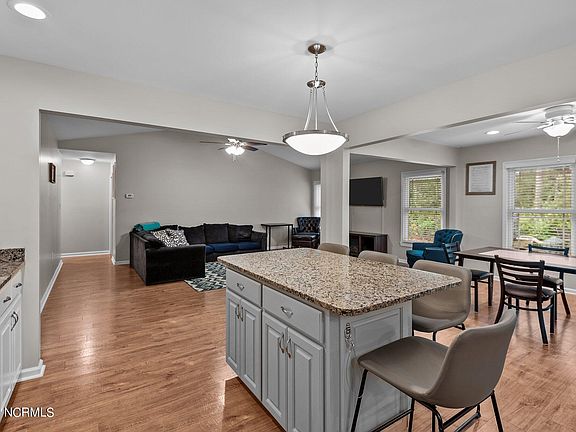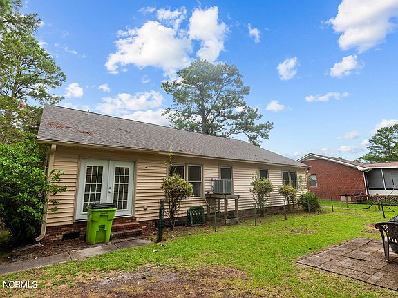 Move in ready in Fairfield Harbour! This beautifully remodeled three-bedroom, two-bathroom residence offers an open floor plan, ideal for both entertaining and everyday living. The stunning kitchen is complete with sleek stainless steel appliances, granite counters, apron sink, spacious island with counter seating and custom-built cabinets in the adjoining dining area. French doors lead you outside to enjoy the private back yard with paved patio.