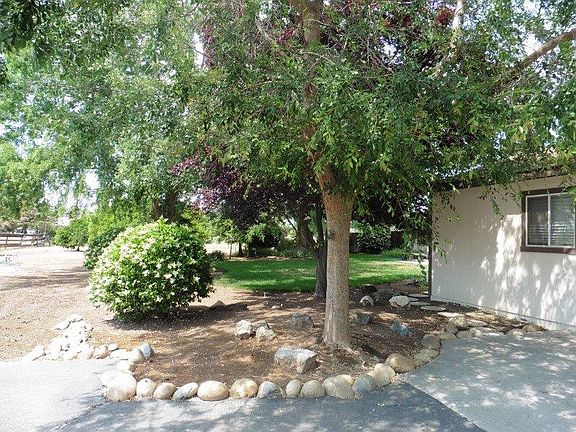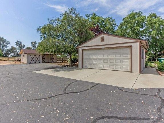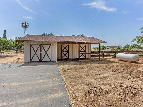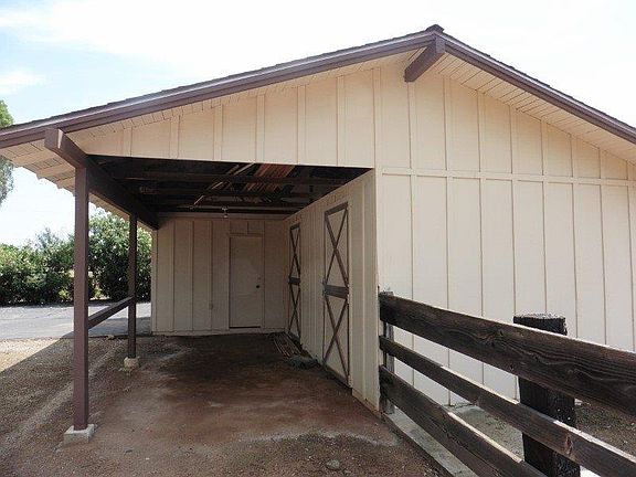 Beautiful grounds surround this ranch style home in great condition. The home just needs updating to make it a showcase. There are newer dual paned windows and a huge cov'd patio. The kitchen was updated in the past with custom solid cherry cabinets and Corian counters & double ovens. There is a large eating area & breakfast bar which opens to the family room. The FR has a brick hearth FP w/a newer wood burning stove insert & a slider to the huge cov'd patio. There is another room which can be used as a LR or a formal DR. The bonus room is a huge game room which was a converted garage done by the builder. Then a detached 2 car garage was built. There are mature, producing orange, lemon, grapefruit & tangerine trees, a barn w/an attached work room w/power & 2 stalls and a fenced pasture. This gem is waiting to shine.