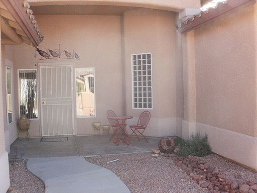 Fabulous 2 bedroom, 1.75 bathrooms plus bonus room. Elevated lot, huge front courtyard offers beautiful mountain views. Tastefully appointed throughout. Gorgeous 18'' tile in living areas. Natural light fills open great room, spacious dining area and kitchen. Chef's kitchen has gas range. Counters, large island and breakfast bar are engineered stone. Cozy breakfast nook. Large bay window in master, den space incorporated into room for exercise/seating area. Walk-in closet. Ample second bedroom has large bay window providing natural light and extra space. Nice bonus room for office/den/study. Great room and master offer patio doors to the paver extended, partially covered back patio, fenced back yard and more beautiful mountain views. Clubhouse membership included. Brokered And Advertised By: Realty on the Greens Listing Agent: Pamela Brandt-Willis