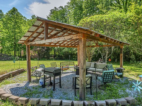 Nice home with open floor plan on 1 acre. Beautiful yard with outdoor pavilion. New HVAC and duct work. Roof approximately 2 years old. Wired surveillance. Large rooms. Master bath features jetted tub, separate shower and double vanities. Kitchen pantry. Refrigerator, stove/oven, washer, dryer and microwave remain. 3 storage buildings; largest is 32x14 with garage door. Convenient location.