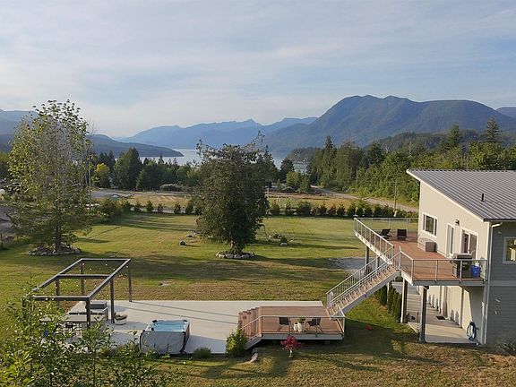 Modern coastal living with unforgettable views — Enjoy both ocean and mountain vistas from this private 1.5-acre gated and fully fenced property. The bright, open-concept interior features a designer kitchen with quartz countertops, quality appliances, and stylish fixtures. A spacious living area with large windows fills the home with natural light and frames the stunning surroundings. Three generous bedrooms and a spa-inspired bathroom provide ultimate comforts. Step outside to a massive deck, private spa, and outdoor bar/lounge—perfect for entertaining or relaxing. There’s ample space for gardening and outdoor activities or future expansion. Bonus: A separate suite ideal for rental income or guests plus an expansive 1,100 sq ft garage.