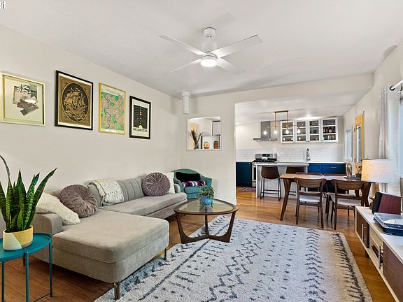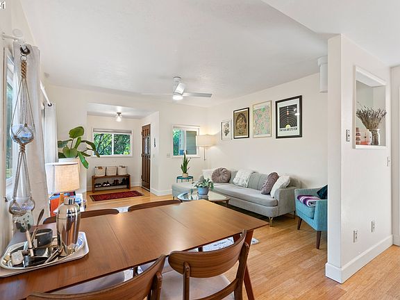 Cheerful Mt. Scott Cottage! This light filled 3 bed/1 bath home has been thoughtfully updated with an open kitchen, SS appliances, fir and bamboo floors throughout, washer + dryer on main. Primary bedroom features a walk-in closet. Energy efficient upgrades including insulation, new windows and new gas furnace. A beautifully landscaped yard that's easy to maintain, yet lush with greenery. Don't miss the 400+ sqft basement for ample storage and flex space. [Home Energy Score = 8. HES Report at https://rpt.greenbuildingregistry.com/hes/OR10195888]