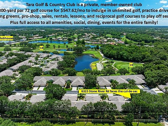 Under contract-accepting backup offers. One or more photo(s) has been virtually staged. Must See This Stunning single-story end unit featuring 2 bedrooms, a den, 2 bathrooms, and a 2-car garage. This turnkey furnished villa is located on a serene cul-de-sac within the Twelve Oaks community of Tara, offering maintenance-free living with a surprisingly low HOA fee of just $1,200 per quarter. The original seasonal owner has taken exceptional care of this villa, which showcases impressive renovations throughout. Notable upgrades include enhancements to the kitchen and bathrooms, appliances, sliding doors, flooring, lighting, and beautifully polished wood floors that enhance the open layout adorned with natural light. This remarkable villa also includes a full golf membership to Tara Golf and Country Club, a well-regarded private, member-owned equity club featuring a 6,800-yard par 72 golf course. for a monthly fee of just $547.62. Here, you can indulge in unlimited golf, access the driving range and putting green, explore the pro shop, and savor meals at the gourmet restaurant, renowned for its award-winning brunch buffet. Additionally, you’ll have access to a wealth of activities for the entire family, including new pickle-ball courts, bocce, tennis, swimming, a spa, a snack bar, a gym with cutting-edge exercise equipment, walking and biking trails, a steam room, plus various events, entertainment, and social activities to keep you engaged and having fun.