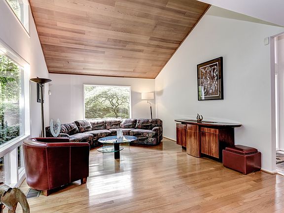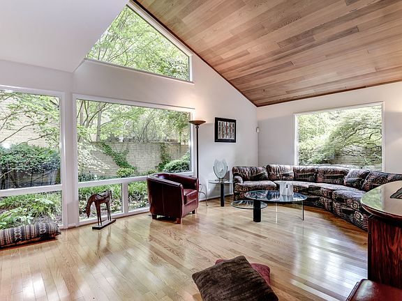 Sophisticated contemporary. Beautiful fairy tale gardens w/ designer lighting. One level living at its best.! Dramatic two story foyer, LR w/ soaring ceilings & tranquil views, elegant DR, sensational T/S chef's kitchen, Family Rm w/ FP & access to deck, MBR suite w/ FP & luxurious master bath, & laundry--ALL ON MAIN LEVEL. 3 BRs, BA, loft w/ sauna on upper level. 2 car garage.