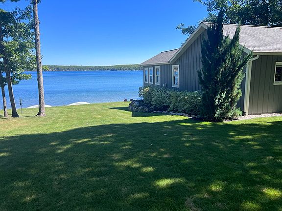 IMPROVED PRICE WATERFRONT HOME on BIG BEAR LAKE LISTED BELOW APPRAISED VALUE! Sellers are moving on and are willing to look at all reasonable offers. Don't miss the rare oppurtunity to own on beautiful BIG BEAR LAKE Welcome to your dream lakeside retreat. Nestled along the pristine shores of Big Bear Lake, this charming three-bedroom offers a perfect summer cottage or year round home. You'll love the stunning views with gentle slope to one hundred feet of sandy beach on the desirable all-sports lake. Other features are the lakeview sunroom, large deck, updated appliances, beautiful landscaping, and cozy gas fireplace. Spacious pole barn for all the up north toys featuring 3 garage doors and sliding door with a 12' clearance for RV storage.