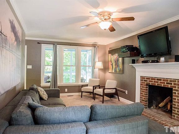 Beautifully updated move-in ready home on culdesac lot in convenient Wake Forest location! Rocking chair front porch plus rear screened porch & large deck overlooking gorgeous wooded backdrop. Hardwoods, crown molding, all new windows, new water heater, ceiling fans thru-out, plus fresh paint & new carpet! Renovated kitchen has granite, subway tile backspl & updated cabinetry. Spacious family room w/wood burning FP. Amazing master retreat w/sitting room, walk-in closet & private full bath w/dual vanity!