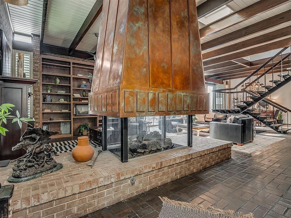 This custom piece of architectural history in Glenbrook could be yours - what an absolute opportunity! When you pull up to the front of this stately duplex, you will get an immediate feeling of "unique." Inside you will be greeted by a custom built fireplace, complete with an aged copper chimney & glassed in gas logs. The exposed wood beams, extremely tall ceilings, large built in bookcase and oversized patio doors that display the large atrium all blend together a perfect ambiance of space, light and architectural variation. You will be breath taken by the staircase - perfectly placed and constructed to be a central art piece of the home. The main floor also has a fantastic flex room complete with closet and vintage bath - the tile, fixtures and flooring are a nod to the history of this home in all the best ways. Further on you will find the first floor main bedroom suite, complete with large soaking tub and generous vanity space. Ample cabinet & counter space in the kitchen, a perfect patio for coffee, and large storage in the utility/half bath make this home both equally beautiful as resourceful. Two secondary bedrooms upstairs share a jack and jill bath space and also include full wall closet storage and perfect natural lighting in each room. The original door knobs, aesthetic details & overall showstopping qualities this home displays make it one to move quickly to buy - come make it yours!
