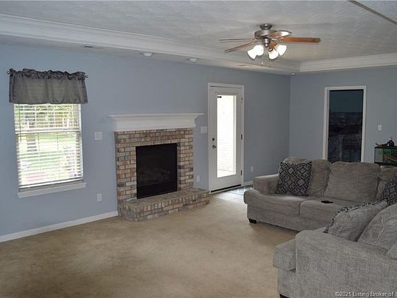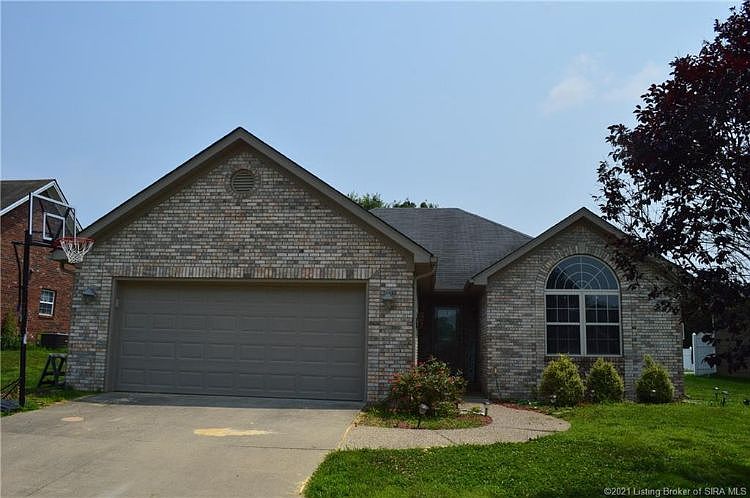 All BRICK RANCH in sought after Skyline Acres. This beautiful home has an open floor plan, spacious eat-in kitchen, an abundance of upgraded cabinets and countertops, vaulted great room with gas fireplace, large master BR w master bath, private patio. Great location in growing area just minutes from the east end bridge. Subdivision has a private lake for residents. The home is actually located in the City of Jeffersonville with a Charlestown mailing address, just a couple of minutes to River Ridge Development.