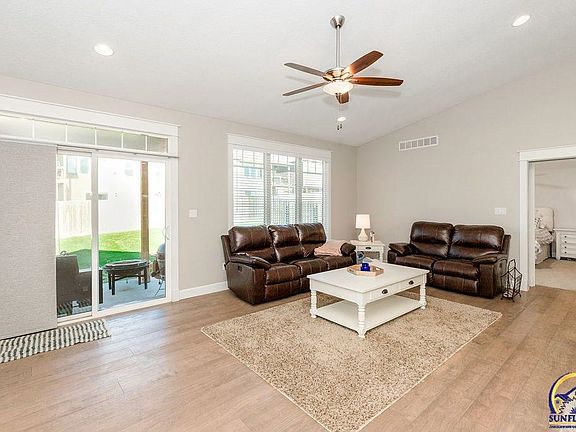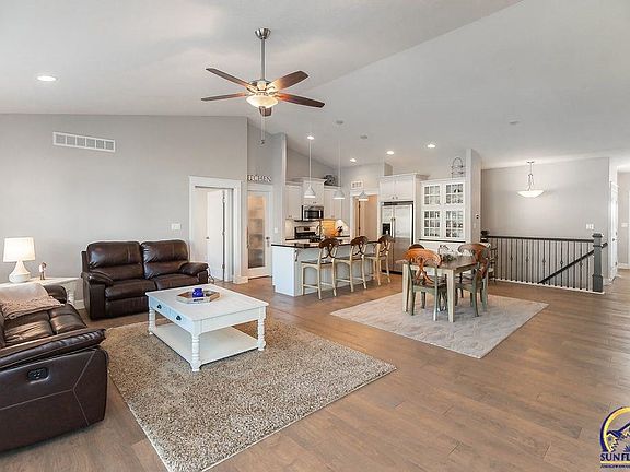 Gorgeous 4 bed/3 bath home near Langston Hughes Elem, Rock Chalk Park, and K-10/I-70 -- with easy access for commuters! Open floor plan w/vaulted ceiling in living room and cozy gas fireplace. White cabinetry in the kitchen w/farmhouse style sink, SS appliances, granite countertops & beautiful glass front dish storage. Nice master suite w/double sinks & large walk-in shower! Full finished daylight basement. Fenced backyard! Sprinkler system too!