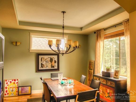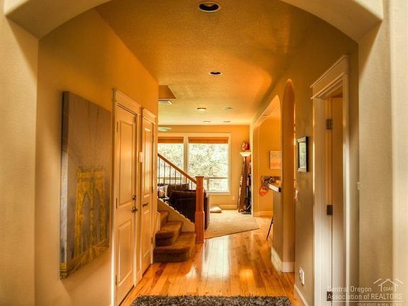 Beautiful custom home with many upgrades in Lava Ridges in NE Bend. Large kitchen with wood floors, great room with built-ins and gas fireplace. Private office off the master suite, large custom cabinets and closet. Bonus room and four bedrooms upstairs, formal dining room with butler's pantry and custom blinds throughout. Four car garage, one tandem. Patio with awning, backs to lava flow for backyard privacy and exterior is newly painted. Front yard landscaping maintained by HOA and community pool.