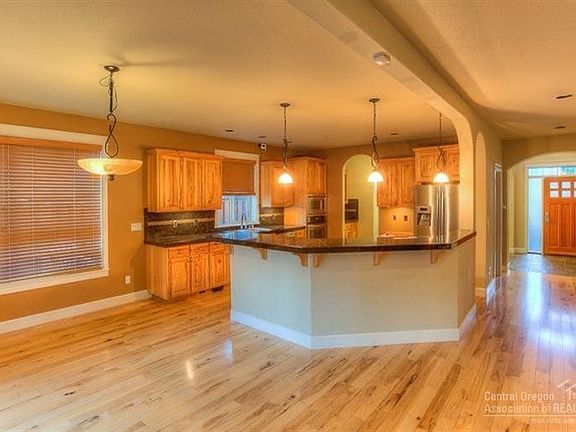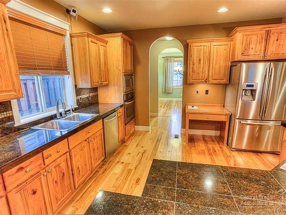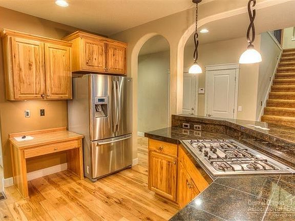 Beautiful custom home with many upgrades in Lava Ridges in NE Bend. Large kitchen with wood floors, great room with built-ins and gas fireplace. Private office off the master suite, large custom cabinets and closet. Bonus room and four bedrooms upstairs, formal dining room with butler's pantry and custom blinds throughout. Four car garage, one tandem. Patio with awning, backs to lava flow for backyard privacy and exterior is newly painted. Front yard landscaping maintained by HOA and community pool.