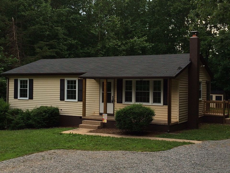 Rancher with vinyl siding on 1 acre sits among trees on a mostly cleared lot; small shed at the rear of the property. Landlord is currently revitalizing the property with new kitchen, flooring, carpet, paint and appliances ready for occupancy Apr 1. Owner pays for water/sewage.