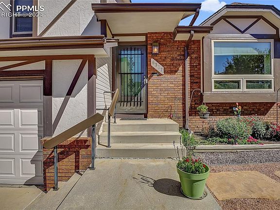 Welcome to this charming tri-level home in the desirable Northwind neighborhood with views of Pikes Peak! This 3-bedroom, 3-bath home with a spacious 2-car garage offers unique style and functionality. The main level showcases beautiful hardwood floors throughout the formal living room, dining area, and family room. The bright family room features a wall of windows, cathedral ceilings, and easy access to the wood deck with a gas line ready for grilling, overlooking the fully fenced backyard—ideal for outdoor entertaining. The meticulous lawn care reflects the pride of ownership, making the outdoor space as inviting as the interior. The kitchen includes all appliances, ample cabinet space, and generous countertops. Upstairs, you'll find three bedrooms, a full bath, and a laundry area. The primary suite boasts a ceiling fan, walk-in closet, and an attached full bath. Ceiling fans are abundant throughout the home for added comfort. The lower level adds a cozy den with a brick fireplace, a 3/4 bath, and encapsulated crawl space for additional storage or office use. Close to shopping, schools, and walking distance to Cottonwood Park and Cottonwood Creek Family Center YMCA. This well-maintained, one-owner home is ready to welcome you—don’t miss out on this fantastic opportunity!