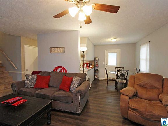 WOW!!! What a deal in Saks! This 4BR 2BA home features a soft gray color scheme and updated laminate flooring in the main living areas, which includes a living room with rock fireplace, dining area, and an attractive kitchen with updated counter tops. Nice size Master Bedroom with attached Master Bath. The 4th bedroom downstairs could serve as a study or game room. HUGE Laundry room offers lots of storage. New HVAC unit installed approximately 18 months prior to listing! Fenced in backyard. This property should qualify for 100% financing through USDA. Don't wait! Call today for more information and your personal tour!