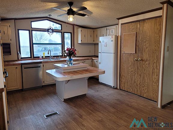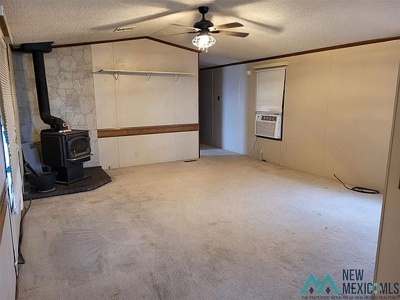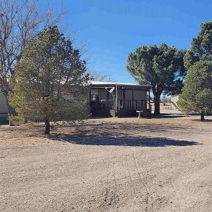 1989 16x 80 Oak Creek Manufactured home with 16' x 12' wood deck, situated on 5+ acres with domestic well, septic tank and propane. Dining/kitchen combo open concept home. The living room is cozy with a wood burning stove. 3 bedrooms and 2 baths with marble improvements. Landscaped with mature trees: 4 Pecan, 5 Pinon and 6 shade. Extra out buildings: Shop/Storage, Well house and a barn.
