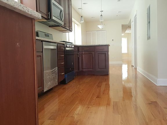 A Unique luxury living opportunity! New building, new units! Amazing opportunity to rent this new 3 bedroom/2 bath condo. Huge Living room and separate dining room with hardwood floors throughout, open floor plan. Eat-in, stainless steel kitchen with table space, marble countertops, breakfast bar, dishwasher and microwave. Top of the line brand appliances !Master Suite with an additional his and her closets, master bath with soaking tub, and bowl marble vanity, central air and heat, and washer and dryer in unit. High end finishes throughout, parking available for rent . Pet friendly. An Absolute Must See. First floor! Long term lease required 2year + Must have good credit and income . Renter is responsible for all utilities. Parking available for rent Pet fee will apply