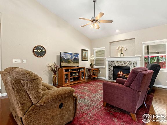 This immaculate residence is designed to accommodate the needs open space and is sure to WOW at your next gathering! With 5 bedrooms, 3 full bathrooms, and a basement set up for a home theater, it is sure to provide comfort and convenience for all. Featuring an extra-large kitchen, equipped with newer gas range/oven and a large island, it's perfect for preparing delicious meals and entertaining. Enjoy time in the cozy living room, equipped with a fireplace to bring you closer together after a chilly Colorado day. The serene outdoor space includes a well-maintained established backyard and a covered patio, essential for outdoor entertaining. The finished basement shines with beautiful new wood floors and is ready for your entertainment area! On just over 1/3 of an acre, you'll have plenty of space to host your family backyard BBQs. Nestled between north Loveland and South Fort Collins, this quiet neighborhood gets you out of the city hustle, is just 10 minutes away from groceries and only 15 minutes away from exciting Downtown Loveland. Call for a showing today!