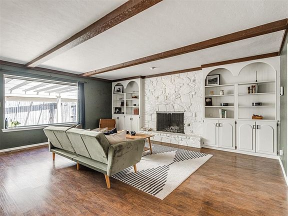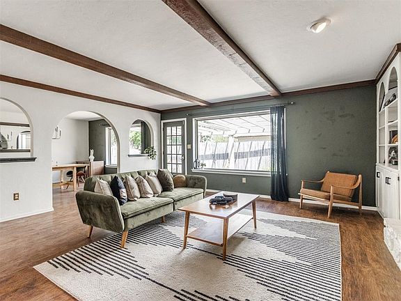 Mid-century charm with the perfect modern touches! With 4 bedrooms, 3 bathrooms, 2 living spaces, a breakfast nook, plus formal dining there is plenty of space for everyone to live &/or to entertain. The kitchen features a wet bar, an island, lots of storage, & a stunning art deco cutout cooking area. The primary suite is spacious & has a private balcony, walk-in closet, double vanities, shower, & a linen closet. There is one bedroom and bathroom downstairs that would be great for multi-generational living. Abundance of natural light & storage throughout! Want to hang out outside? Checkout the large patio with pergola, dog run area out back, cozy cove at entrance, or the oversized garage complete with storage & storm shelter. Tired of being at home? No worries...the HOA features a pool, parks, fishing pond, walking trail (access right in the cul-de-sac), & social meetups! Updates include upstairs AC, hot water tank, & lighting fixtures. Exterior wood siding, exterior paint, & pergola rafters recently updated!