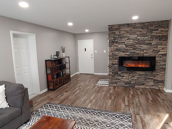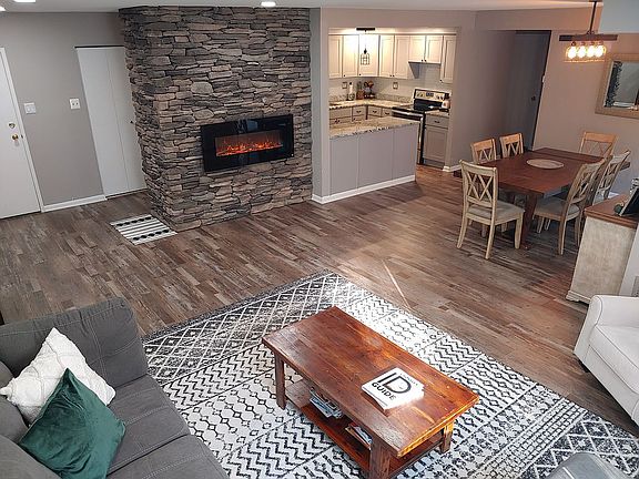 Stunning first floor unit available! The sprawling 1,800 sqft, 3 bed 2 bath layout offers a cozy, rustic chic feel. Completey updated including a stone fireplace, granite counter tops, stainless steel appliances, and a dedicated laundry room. Lots of closet space indluding a walk-in closet in the master suite. Located in a full service building with doorman, front desk, and valet parking. Balcony overlooks the 6 acre park-like grounds. *HOA prohibits renting/leasing/letting.