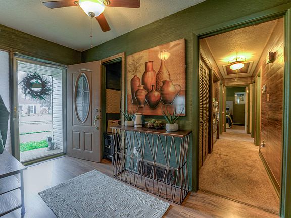 Large lot! Big enough for a pool! New siding, newer double pane windows, new garage door, new disposal. Large vaulted living space great for entertaining. 3 Bedrooms and 2 Baths. All kitchen appliances stay (Refrigerator, mini fridge, stove and vent a hood microwave). Wall mounted fireplaces stay in dining room and middle bedroom.