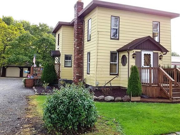 Room to Roam! Colonial home featuring an Eat-in Kitchen with appliances, Formal Living Room, 1st floor full bath, 3 BD's ( 1 with new carpet), Family Room addition ( added '82) with woodburner, full basement with walk out, 3 decks, huge detached garage (approx 5-6 cars), extra wide & long driveway with plenty of parking, pond, cabin ( as-is) & 3.04 Acres! Hot water tank, high efficiency furnace, C/A, water softener, well pump & holding tank all approx. 9 yrs. ( c/a was just hooked up and used this summer )