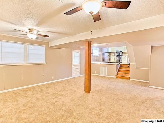 Fantastic home on corner lot with so many new features. Air conditioner is brand new as is all carpet and flooring. Modern kitchen boasts new cabinets, counters, stainless appliances and custom tile backsplash. All new blinds and light fixtures throughout! Incredible unfinished space could be used as hobby room, studio or workshop. Call Trevor at 256-603-6755 to see it and make it yours!