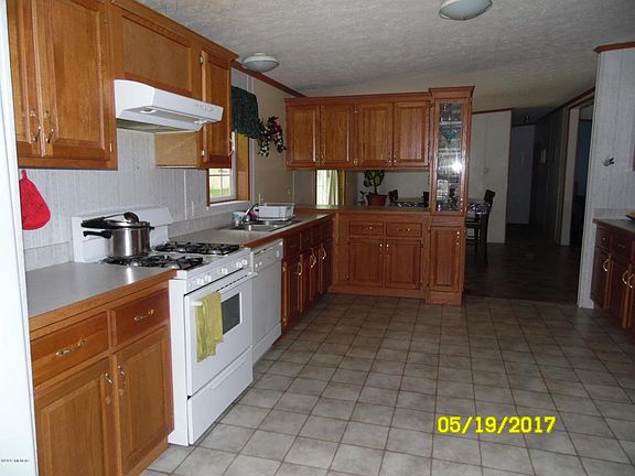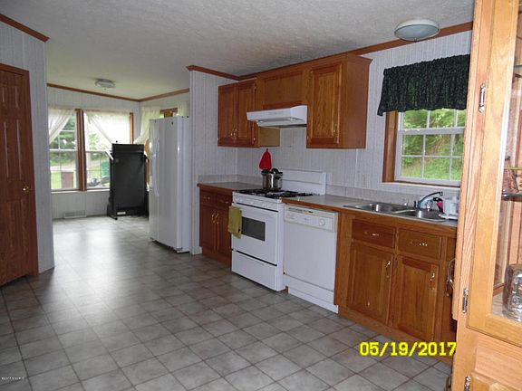 Great opportunity to purchase a well keep 4 bedroom and 3 full bathroom 2001 manufactured home featuring over 2300 sq.ft. living space. Full basement with living quarters that has its own kitchen, living/dinning, bathroom and bedroom that is accessible from the two car attached garage. This could be a smart investment for extra income to help make payments. Two small storage sheds and 500 gallon LP tank included. Nice dice deck with peaceful setting, with over 2 acres of woods and plenty of wild life. Handicap accessible home that has open concept. All measurement are approx.