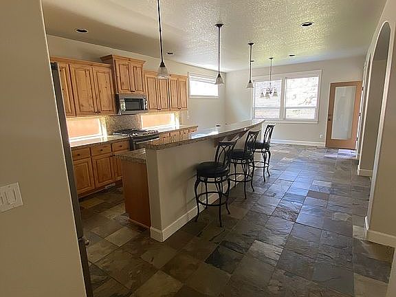 Charming 2 story Northwest home located in Lava Ridges includes five bedrooms and three full baths. Enjoy cooking in the gourmet kitchen that boasts granite countertops, hickory cabinets, top of the line appliances and a large walk in pantry. The living room features a rock fireplace surrounded by hickory built-ins. Upstairs is a large master suite with a 3-sided fireplace including a private sitting area, floor to ceiling slate shower and large walk-in closet. Upstairs will also find a large bonus room, walk through laundry room, and 3 additional guest bedrooms. Home upgrades include A/C, a high-end air purification system, new carpet, appliances, fresh paint throughout, epoxy flooring in the 3 car tandem garage, new roof, and exterior paint. The landscaped back yard backs up to a private lava rock ridge and is in close proximity to the elementary school and Pine Nursery Park. Neighborhood amenities include a community pool and maintained front yards.