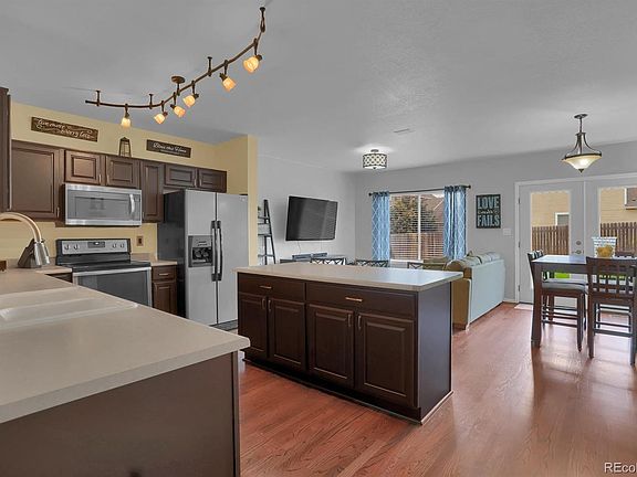 Check out this Bright and Beautiful Home in Ridgeview at Stetson Hills! You'll love the great curb appeal... but just wait until you get inside! It's clean as a whistle with updated colors and fixtures, and a warm, open feel. It's the perfect home for entertaining, as you flow through the living room, kitchen and family room... then to a walk-out to the large back patio. The kitchen features beautiful hardwood floors, stainless steel appliances, a large island and breakfast bar, and rich dark cabinets with pull-outs. Four bedrooms upstairs ensures everyone is together, and there's even a spacious upstairs laundry room (so no hauling laundry downstairs!) Enjoy the green, manicured lawn and outdoor fun on the patio. Ice cold A/C (which you'll need this summer), Washer & Dryer, Automatic Sprinkler system, OnQ Home Network System, Built-in Speaker System, and a full basement to make your own! Super close to shopping, entertainment and dining, as well as St. Francis Medical Center. Minutes to Powers Blvd and easy access to I-25. A convenient commute to Ft. Carson, Peterson AFB, Schriever AFB and the US Air Force Academy.