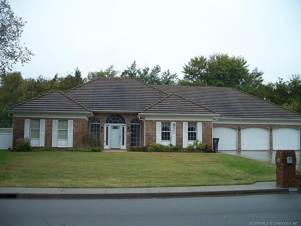 All the bells & whistles with this one! Full brick 4 BR, 2 baths, 3-car gar., work room + small shop in back with overhead door, greenhouse, large Koi pond, landscaped yard, huge patio. Large formal dining with built-in china cabinet + nook off kitchen. Kitchen has granite, SS refrigerator, 5 burner gas cooktop, wall oven, B/I microwave, lots of cabinets & pantry. Utility with washer, dryer, freezer & icemaker. Huge mstr. bath w/dble. sink vanity, roll-in shower & walk-in jetted tub. Fixed generator.