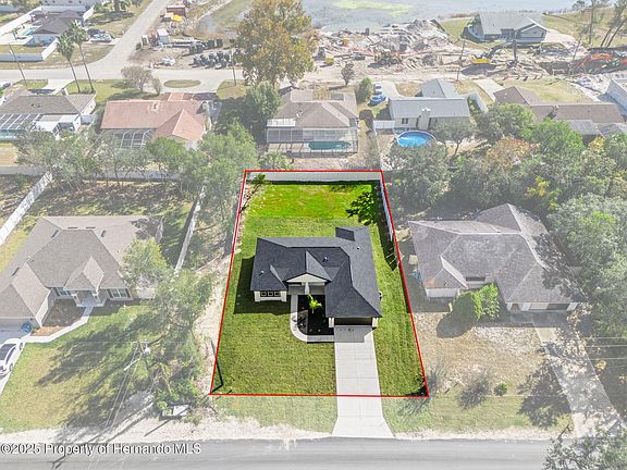 The open great room/kitchen concept is separated by a floating island that will surely be the hub of all the family gatherings! Cathedral ceilings are in the main living area, and the great room opens to the patio by 2-4-foot PGT sliding doors, the patio has lighting, electrical outlets and a convenient hose bib! The kitchen has white shaker style soft-close cabinets with a built in lazy-Susan, white quartz countertops, no smudge black SS Whirlpool refrigerator, microwave, range, dishwasher and garbage disposal. The single deep sink with a goose-neck water fixture makes it easy for filling large pots! There is a pantry and ample cabinets! Pendant lighting over island matches dining and entry lighting. The dining area is offset from the kitchen in front of the beautiful front window. To the left of the front entry is the primary bedroom ensuite...the bathroom has 3 windows offering lots of natural lighting, black plank tile flooring, white shaker style soft-close cabinets, white quartz countertops with two vanity sinks, decorative mirrors and lighting, a large walk in shower with trackless heavy glass door, built in shampoo shelf, subway tile and a rain shower head to melt away or wake up your day! Passing by his and her closets you enter the sleeping quarters of the primary bedroom that have two windows for more natural lighting. On the opposite side of the home are two nice size bedrooms that are separated by the guest bathroom that displays white shaker style soft-close cabinetry, white quartz countertops, black plank tile flooring, decorative lighting, a tub/shower combo with subway tile and a linen closet! On your way to the guest hall, you pass an inside laundry room that has a supply closet, and the washer/dryer hook ups. From the laundry room open the door to the two-car garage with 2 exterior windows for natural lighting and a mop sink! The location of this home is amazing less than a mile to Cortez Boulevard turn and enter the eating, shopping, and medical corridor hub of the county or jump on to the Suncoast Parkway that will take you north into Citrus County or south into Tampa for all the cultural, sporting, entertainment, medical, traveling by land or sea to meet most anyone's dream or desires! Turn left or west on Cortez Blvd and enter the wild side of the county, from the infamous Weeki Wachee River or head out to the Gulf of America along our protected coastline by public boating ramps, the best of two different worlds conveniently located to your new home! DON'T MISS THIS GREAT OPPORTUNITY! SCHEDULE YOUR VIEWING TODAY!