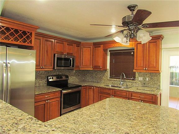 Beautifully remodeled home on corner lot close to shopping and 75. Many upgrades with this beauty! Kitchen has stainless steel appliances with granite counter tops and custom cabinets. Large screened lanai off kitchen for easy entertaining. Master bedroom has built-ins for lots of storage. Custom walk-in shower in master bath with ceiling mount shower head. Large master walk-in closet with built-ins. Home is wired for, and has security camera system in place. Roof was replaced in 2012. Agent to verify square footage.