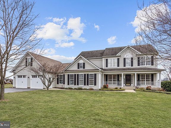 Gorgeous home on nearly 3 acres boasts spacious, design-inspired interiors, a garage expansion, and high-end finishes throughout! Addition of a true two-car garage featuring a second story offering ample storage is sure to impress as well as the conversion of the original garage to an exercise room. Renovated kitchen appointed with 42-inch soft-close cabinetry, stainless steel GE appliances, Quartz counters, slate tile backsplash, and composite flooring that continues into the breakfast room with custom wall design. The family room is sure to be the heart of the home featuring a fireplace with pellet stove insert. Formal living and dining rooms with hardwood flooring and stately columns oppose one another. A den/study and laundry room with built-in drop-zone conclude the main level. Master bedroom highlights a tray ceiling with box trim, a walk-in closet, and en-suite bath with a double vanity, soaking tub, and separate shower. Three additional generously sized bedrooms and a full bath complete the upper level. Walkout lower level houses a fifth bedroom, recreation room with surround sound, bonus room, full bath, and storage room. Relax and unwind on the composite deck with retractable awning overlooking the spacious rear yard. Property Updates: Kitchen renovation, Thompson Creek windows on back of house, interior paint, wood blinds throughout, laundry room drop-zone, bath fixtures, breakfast room wall design, deck, and more!