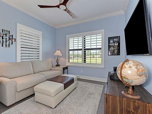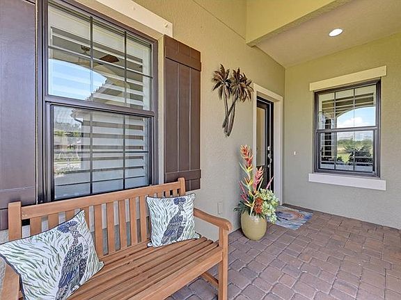Better than new! Priced $33,000 under reproduction AND less than a year old. This Villa boasts extensive upgrades: granite and marble counters, upgraded GE Profile appliances, real hardwood flooring, crown molding, plantation shutters, high end fans and lighting, extended lanai, backing east to watch sunrise in the morning, with pocketing sliders, travertine flooring and natural gas stainless Weber grill. Extras are too many to name. List of upgrades available in home and attached. This stunning lot has views of a gorgeous pond in the back screened in lanai. It has been well-maintained and loved by its one owner. Live the Lifestyle! Villa Amalfi offers Resort Style Pool, Spa and Cabana in a gated community. Low HOA fees! Some furnishings may be available upon negotiation with the seller.