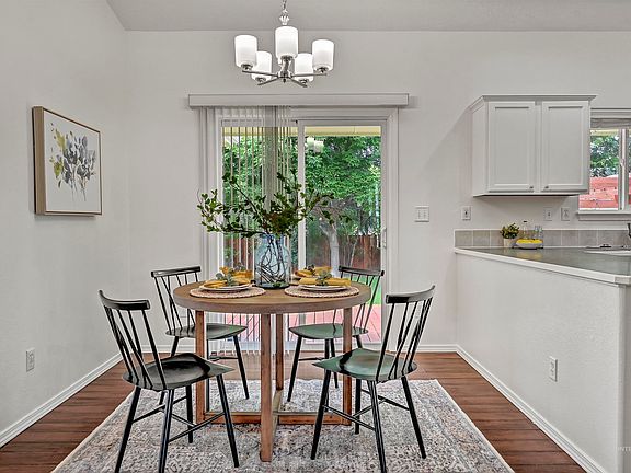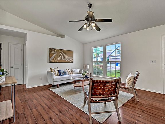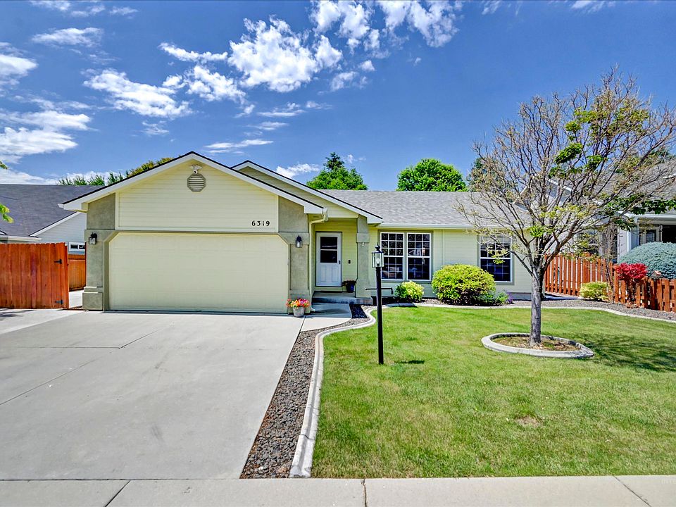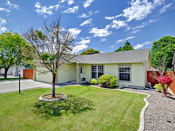 Charming single-level home with plenty of parking on a peaceful, quiet street! Enter to a spacious open-concept floor plan with fresh paint, vaulted ceilings, & abundant natural light. The large kitchen features a breakfast bar, stainless appliances, & a huge pantry! The convenient split-bedroom layout includes a primary ensuite, two additional bedrooms with new carpet, plus a bonus room ideal for use as a play room, media space, or office! Step outside to the beautifully designed backyard retreat featuring a spacious covered patio, custom pergola, large deck, & a well-maintained lawn shaded by mature trees. A charming swing & garden shed add function & character, while a fully fenced side area includes a concrete RV pad, a gravel dog run, & raised garden bed for veggies and flowers — ideal for relaxing, entertaining, or playing outdoors! Plus, just down the block you’ll find the entrance to a lovely park with picnic tables, a basketball hoop, & a well-equipped playground. A brand new roof clinches the deal!