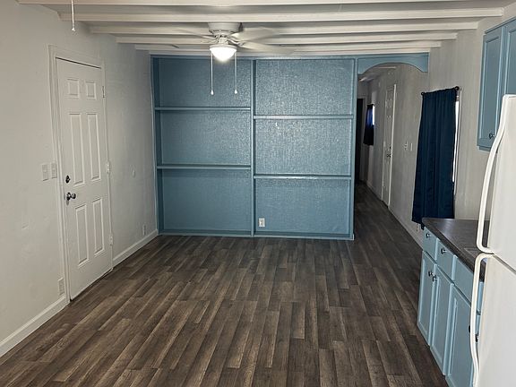 freshly painted mobile home. comfy two bed one bath until with a built in shelf storage on the wall, big living room and kitchen area