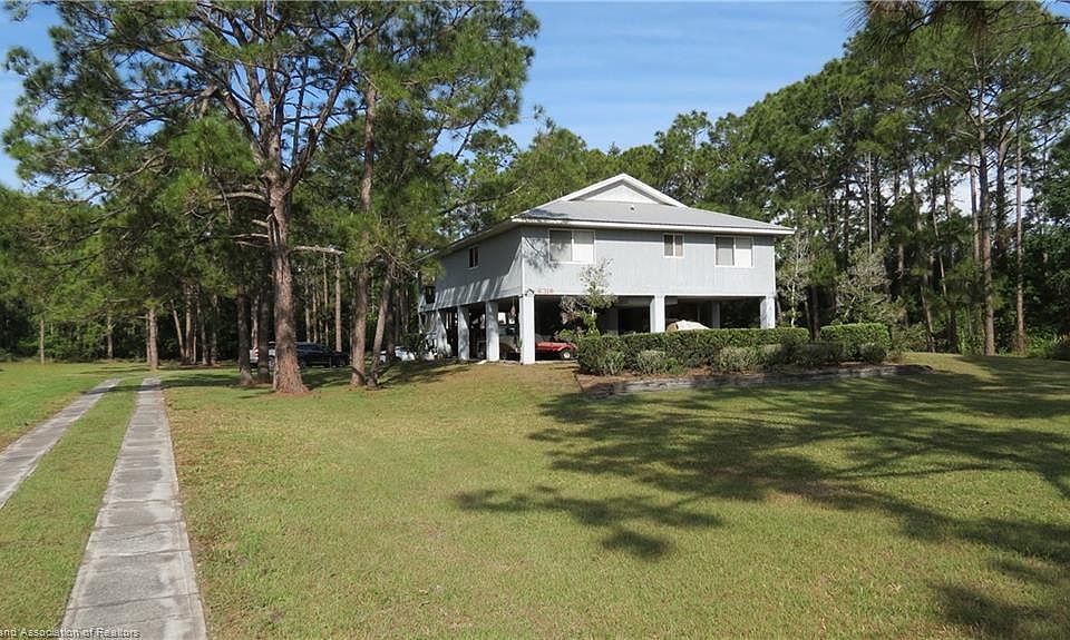 Two story - stilt style home on 2 acres in a quiet area of Orange Blossom Estates. The down stairs has a concrete pad with a full bathroom and summer kitchen plus a "dumb waiter" lift to bring items up stairs located next to the stairway. Upstairs are 2 bedrooms, 2 baths, a good sized den and large screened porch. It's an open living/dining room floor plan extending to the kitchen that has a custom island with lots of cabinet space. The grounds are nicely landscaped with mature pine trees plus a concrete drive leading to the back yard and the large warehouse. In the back corner of the property is the 34X48 warehouse with an office plus 2 bay roll up doors. Building is 14 ft high. There is also an additional shed in the rear. Home being sold "AS IS". PURCHASE IS SUBJECT TO PROBATE 90 DAYS